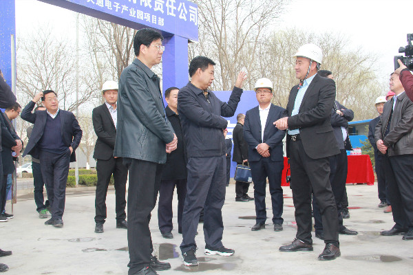 2019年3月27日下午,平?jīng)鍪形睍?、市長王奮彥、市委常委、崆峒區(qū)委書記陳鐸、市政府秘書長薛曉宏等市委領(lǐng)導(dǎo)及平?jīng)鍪泄I(yè)園區(qū)管委會主任馬春寧等園區(qū)主要領(lǐng)導(dǎo)一行人蒞臨甘肅振興·天通電子(物流)產(chǎn)業(yè)園項(xiàng)目施工現(xiàn)場指導(dǎo)工作。