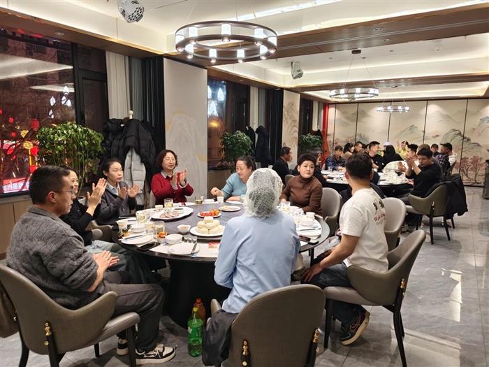 團(tuán)圓宴上,大家卸下工作的疲憊,圍坐一堂、暢談心聲,分享著一年來工作中的收獲與感悟,訴說著生活里的喜悅與期許,現(xiàn)場暖意融融、溫情涌動。